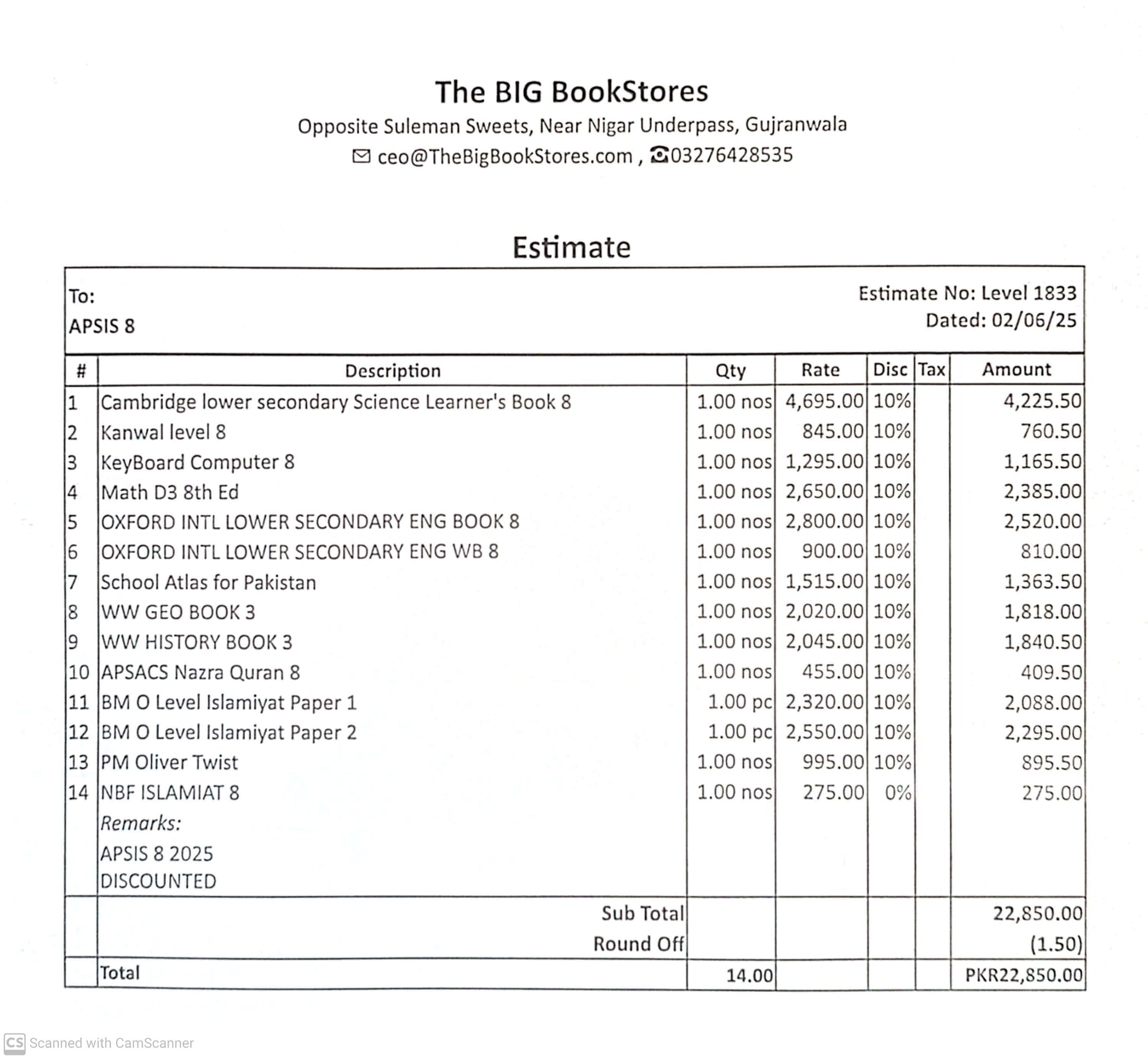 | 14 | NBF ISLAMIAT 8 | 1.00 nos | 275.00 | 0% | 275.00 | |