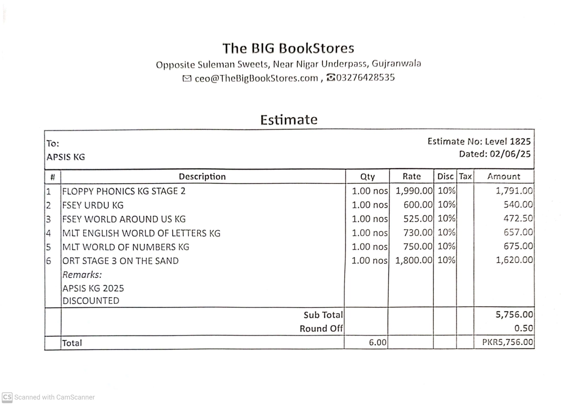 | 2 | FSEY URDU KG | 1.00 nos | 600.00 | 10% | 540.00 | |