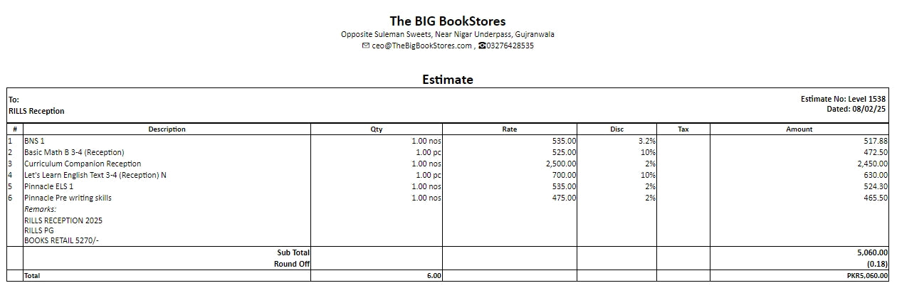 | Total | 6.00 | PKR5,060.00 |
